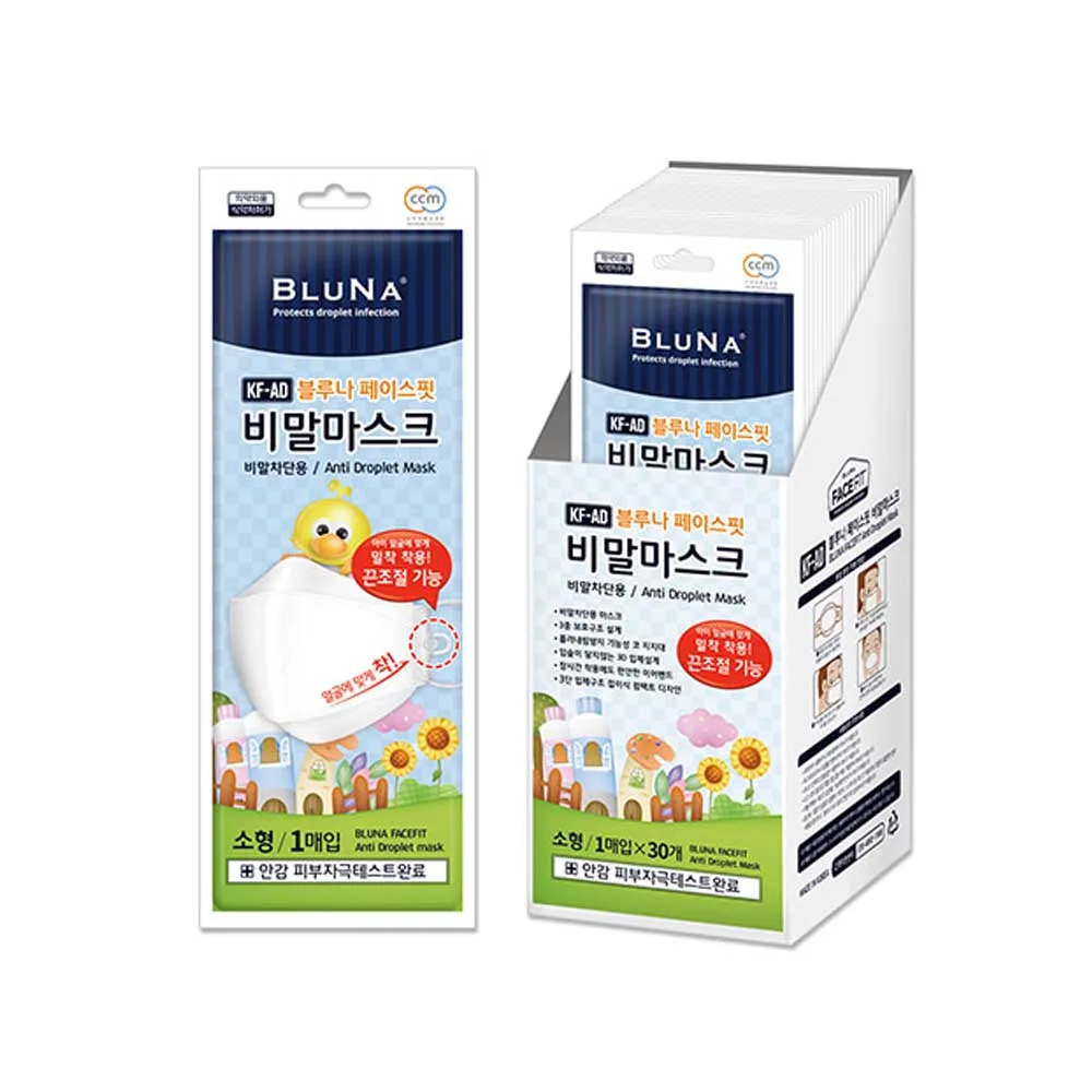 Discover the Bluna Facefit KF94 Adjustable Masks for kids in a clean white color. This set includes 60 masks, perfect for ongoing protection. With adjustable straps, they provide a comfortable fit for any child. Made from high-quality materials, these KF94 masks ensure excellent filtration against harmful particles. Trust Bluna for your family's safety.